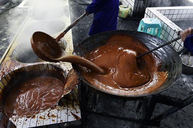 当冬令水果甘蔗丰收后,先祖们会把甘蔗压在一对由柴油驱动的重型压榨机上,果汁汇集成一流进入火上的锅子,数名糖工辛勤搅拌厚重的、纤维很粗的甘蔗汁,最终会熬成棕色的红糖,浓郁味道十分诱人。古法红糖被视为世界上最古老的糖之一,如今也是暖胃的营养甜品。