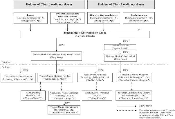 腾讯以持股58.1%位居TME第一大股东;太盟投资集团持股9.8%;海外流媒体平台Spotify持股9.1%;中投中财基金管理公司持股7.2%。