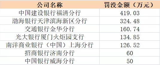 从被罚原因来看,南洋商业银行(中国)上海分行和交通银行金华分行2家银行凭企业虚假合同和提单,违规办理转口贸易付汇业务和贸易融资业务被罚。中国建设银行福清分行、光大银行厦门火炬园支行和渤海银行天津滨海新区分行3家银行被罚则是因为违规办理内保外贷,还有招商银行济南分行和中国银行威海分行2家则是因为为客户利用境内个人年度购汇额度办理分拆售付汇业务被罚。