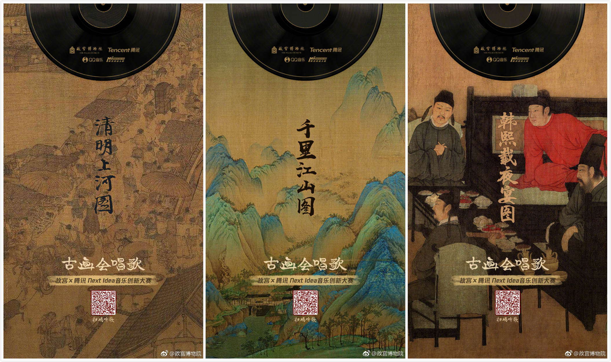 这场名为“古画会唱歌”的音乐会,事实上是Next Idea腾讯创新大赛 、QQ音乐和故宫博物院共同举办的一个文创项目。具体来说,就是故宫第一次对外公开了包括《千里江山图》、《韩熙载夜宴图》、《清明上河图》在内的11幅千年古画作为创作灵感,腾讯和QQ音乐作为平台,让参赛选手通过现代音乐的方式为每一幅古画配上一首歌。