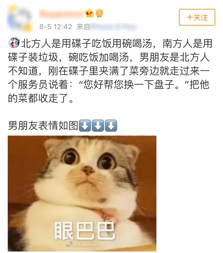 但是如果这时候加进来一个刚来南方不久的北方人,画风可能马上就变得不同了……