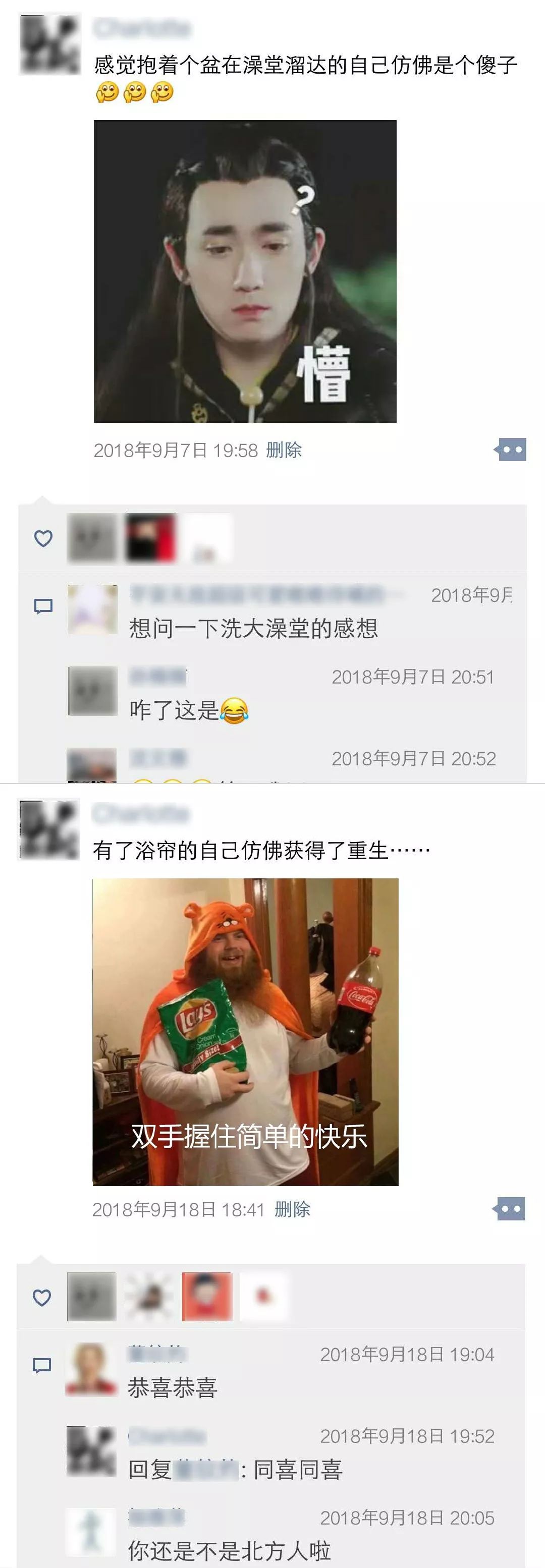 就比如说,现在我这么一个土生土长的北方妹子竟能被没有隔断的大澡堂子吓傻,端着个盆仿佛穿越过来的一样。想跟室友吐槽,结果还各种被北方室友嘲笑矫情、事多……