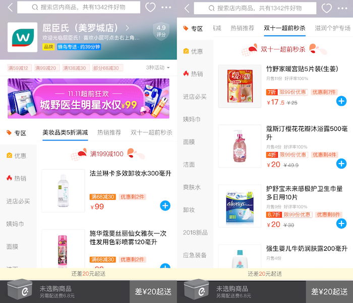 近日,屈臣氏对外正式宣布进驻饿了么平台,双方达成业务合作关系,为消费者提供“线上下单1小时闪电送”的购物服务。