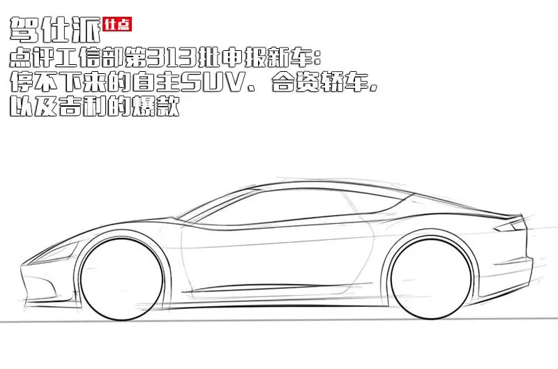 具体看313批的新车,大家整体呈现出的是两极化的趋势——自主品牌更趋向SUV,合资品牌更趋向轿车,而共同点是都很少。但未来的爆款多,比如吉利的主力SUV和大众的主力轿车之一;也有些不那么被看好的选手,判断上市后一个月销量三千还是五千其实挺难的,比如下面这位。