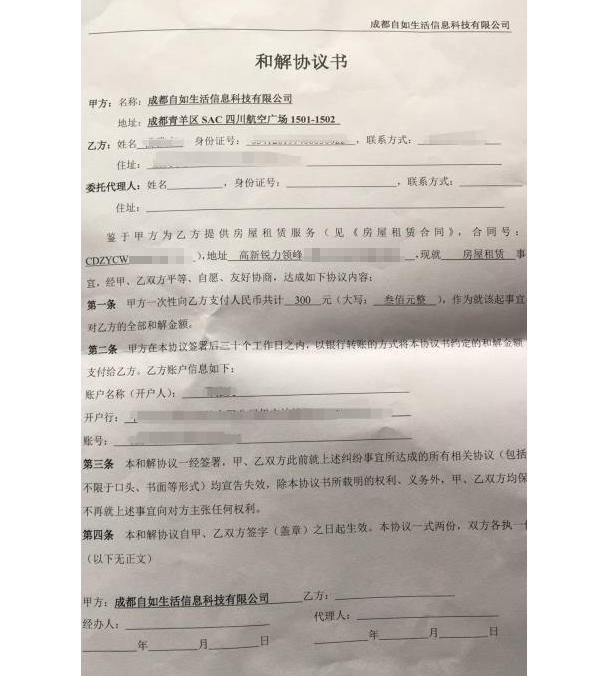 成都的尚先生自费检测出房间甲醛超标,但在跟自如报销检测费用时却被要求签和解协议书,直到现在检测费也没有得到报销。