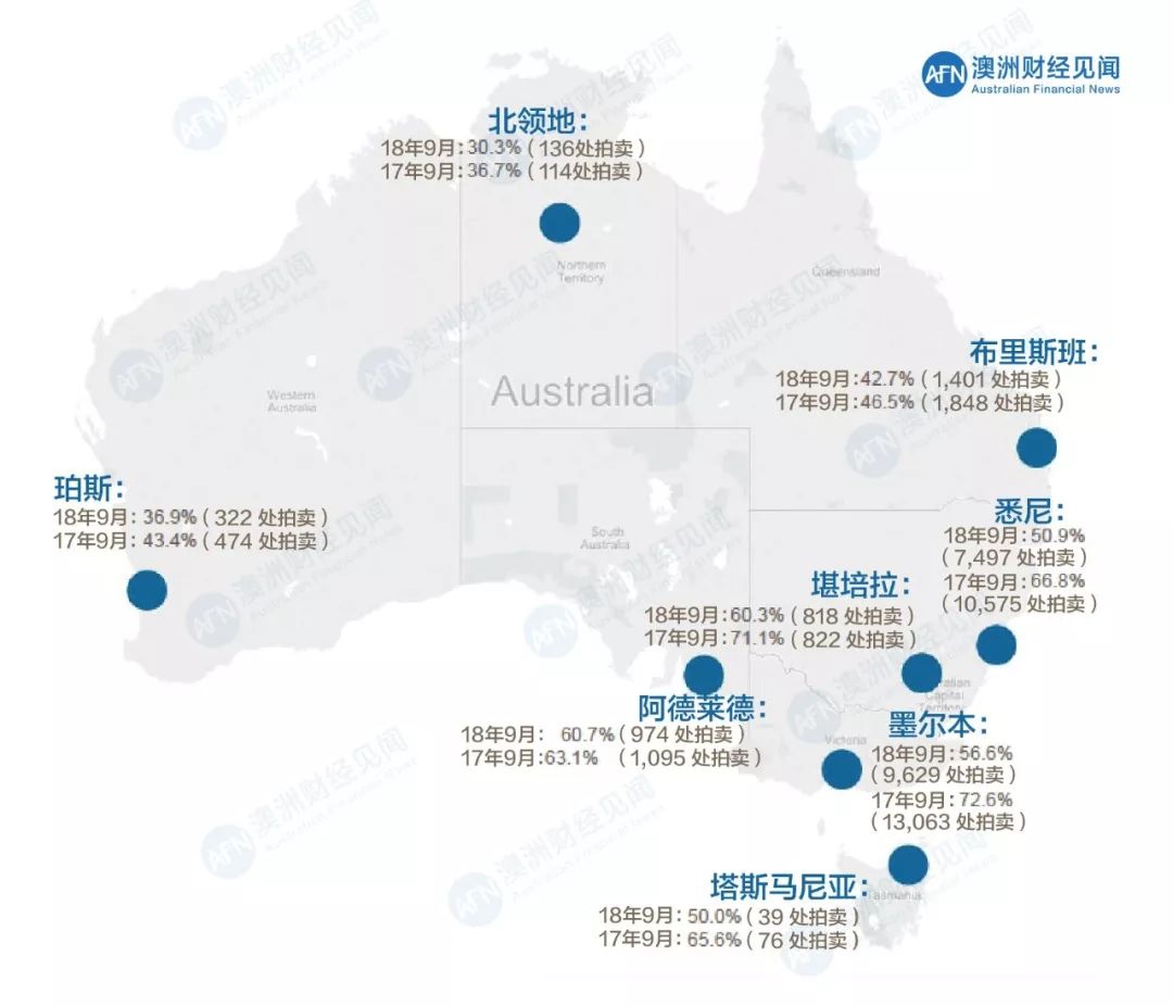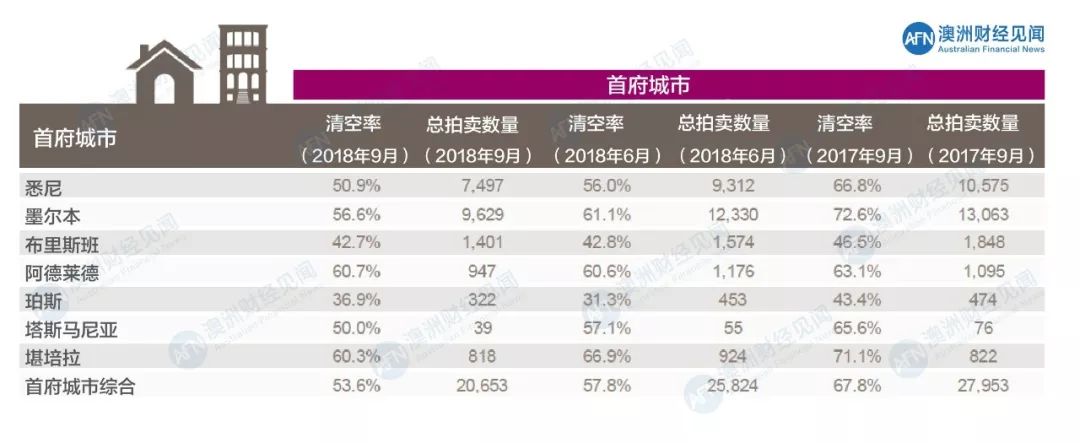 截至2018年9月底的三个月内,澳大利亚首府城市共计拍卖房产20,653套,较上一季度的25,824套和去年同期的27,953套均出现明显下滑。
