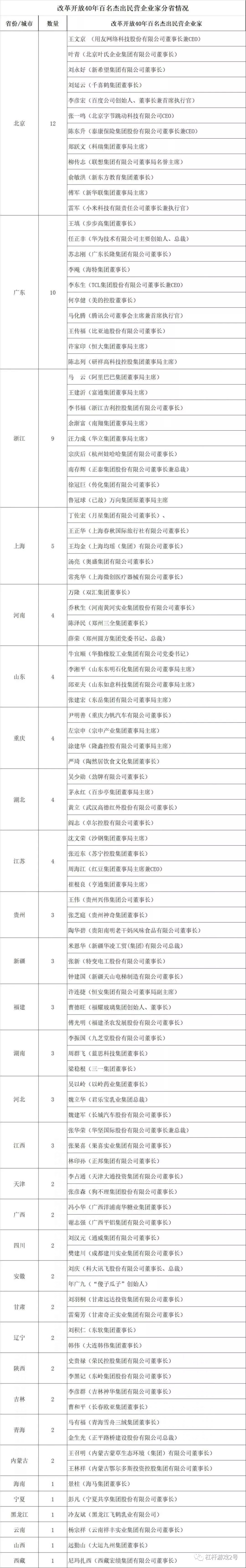 另外,这些企业家分别属于哪个省(自治区、直辖市),也很有意思。