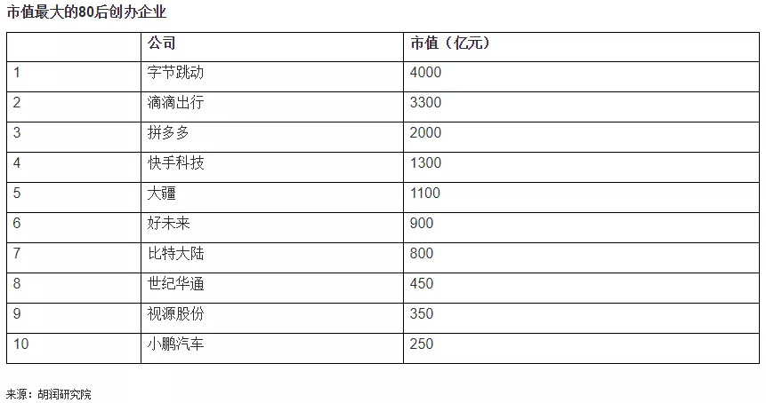 《2018胡润80后白手起家50强》榜单摘要: