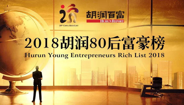 继10月10日发布《2018 LEXUS雷克萨斯 胡润百富榜》(2018 LEXUS Hurun China Rich List)之后,胡润研究院今日发布其子榜《2018胡润80后富豪榜》(Hurun Young Entrepreneurs Rich List 2018),这是胡润研究院连续第三次发布此榜单。