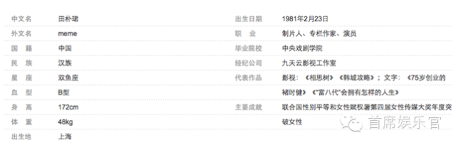 查看百度百科就知道,田朴珺毕业于中央戏剧学院导演系,早在2004年她与马楚成一起宣传《韩城攻略》时也自曝“四年前自己刚刚在中戏上学”,根据此推断,她入学年份应在2000-2001年左右,但中戏1999届至2002届的毕业生也都不曾听说过此人。无论是她此前的艺名焯匀也好(这还是王晶给取的呢,真是有够琼瑶的),田朴珺也好,都没听说过。难道她是凭空出来的?