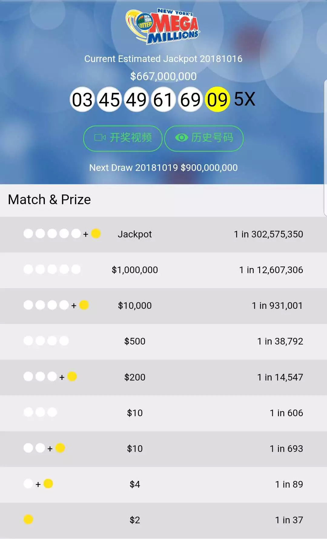 资料显示,该奖来自“百万大博彩(MegaMillions)”,它是美国最受欢迎的彩票之一,在美国43个州和哥伦比亚特区及美属维京群岛发售,只花$1就可以买一注,而且还是跨洲兑奖,不限制地域。