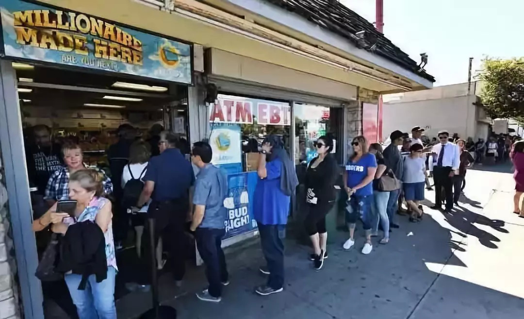 不仅仅是海外党,整个美国都疯掉了,纷纷排队买彩票。