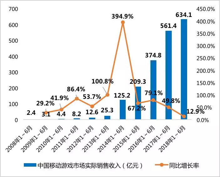 移动游戏市场实际销售收入634.1亿元,同比增长12.9%,这个主力市场的增长率同样是十年未见之低。