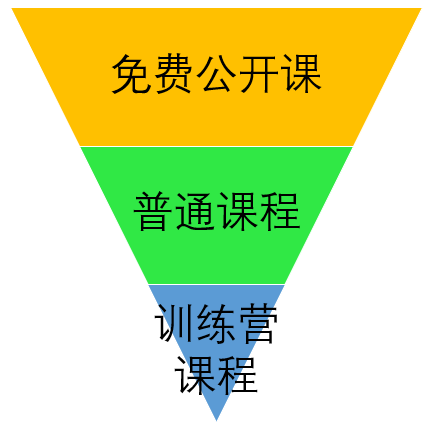 为什么即要给免费课导流,也要给低客单价课程导流?因为你的内容体系用户一旦增长到一个量级,则会出现不同等级的用户,或者说,不同忠诚度的用户。一般新用户,即刚刚进入平台的用户需要往免费课导流。进入平台一段时间的用户,需要向低客单价课程导流。因为最终能够带给企业营收的,是漏斗最下层,即高客单价产品。