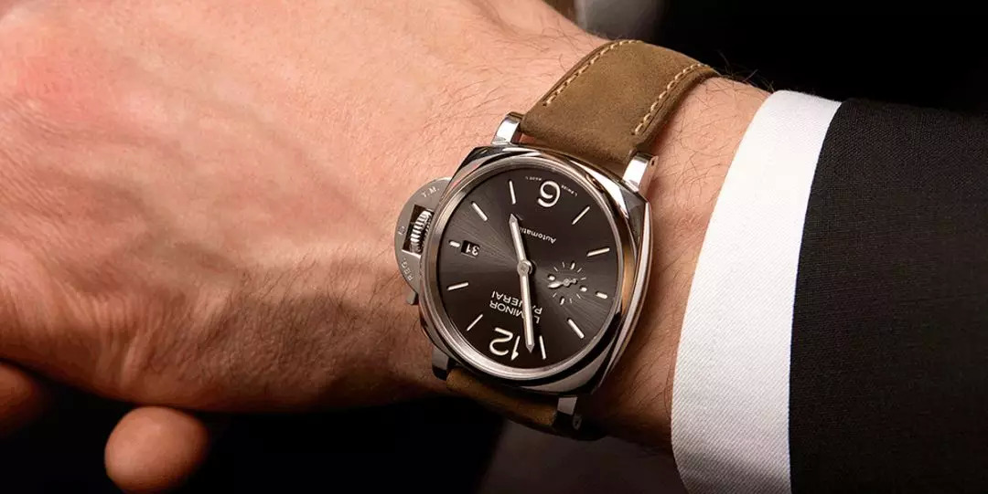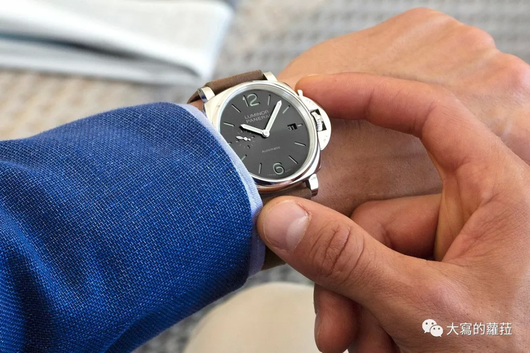 △ 更薄的尺寸让沛纳海Luminor Due系列也更适合商务正装时佩戴。(表款:Luminor Due 38毫米PAM908)。