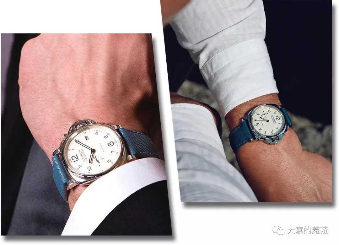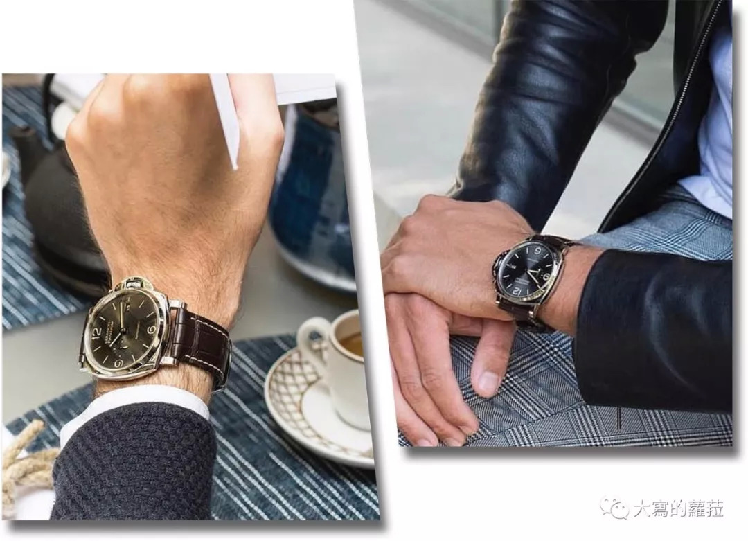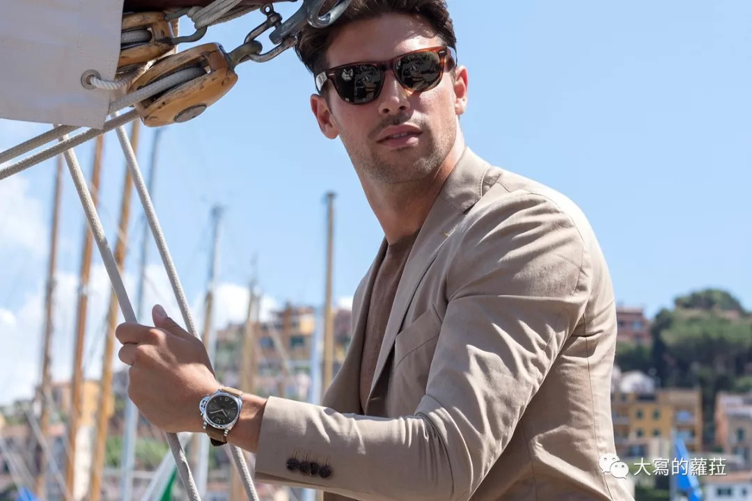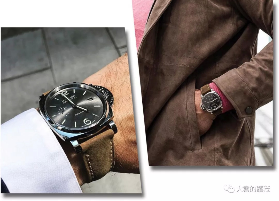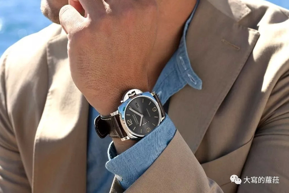为什么我之前说Luminor Due系列恰恰印证了意大利男人特有的“spezzato”着装风格?Due在意大利与也有两个、两倍(Double)的意思,“spezzato”是一分为二;Due则是两个之意,像是场景设在意大利的《天才雷普利》电影中:裘德洛一面穿着修身剪裁的西服,简单配上不上领带的白色衬衫,戴上黑昵绅士帽,吹奏着爵士小号,优雅中带点随性;另一方面又穿着马球衫加细管棉裤,系上精致手工皮带配上柔软皮革便鞋,骑上摩托车在随性中带着精致的细节。