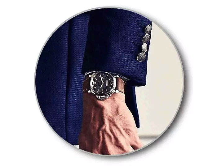 很多人都说沛纳海雄壮的外型,不适合正装打扮,正装就应该选择薄且圆形的古典设计表款,我却认为,现代男性的妆束应该更多元,正装搭配无外乎就需要一枚薄度适中且外型突出独特的表款,以突显个人品味。沛纳海最具标记性设计的系列莫过于Luminor系列,大大的半圆形表冠护桥,将护桥上的拉杆拉开,便可以松开抵在表冠上的抵杆,接着就可以将表冠拉开进行调时或上链。这个从1953年开始就为沛纳海专利的防水表冠设计,一直到今天都是其他的表款无能替代的经典。