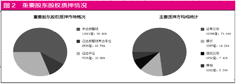 根据上图显示,重要股东质押已达平仓线占30%,已达预警线为平仓占10%,质押盘平仓对二级市场有巨大的冲击。8月至今,已经有西南证券、东兴证券、华鑫证券、华安证券、中信建投和银河证券等多家券商发布了股权质押诉讼公告,涉及金额逾30亿元。目前已有多家券商停止了股票质押业务,其中包括一家规模前十的大型证券公司。