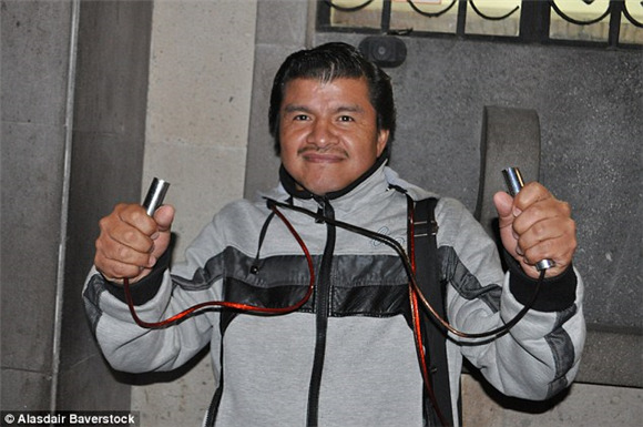 Leonardo Flores亲自体验了这个挑战,双手握住金属手柄,85伏的电压从他的左手前臂内侧向上通过腋下到整个背部,然后再传递至右手。Flores说:“很有趣。它给你一种颠簸感,之后你会感觉很好。人们也说,它可以减轻宿醉的痛苦,但是我没有感受到。”