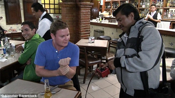 它已经成为我们国家饮酒文化的一部分。只要有墨西哥人喝酒的地方,你绝对可以看见有人在周围提供触电游戏。