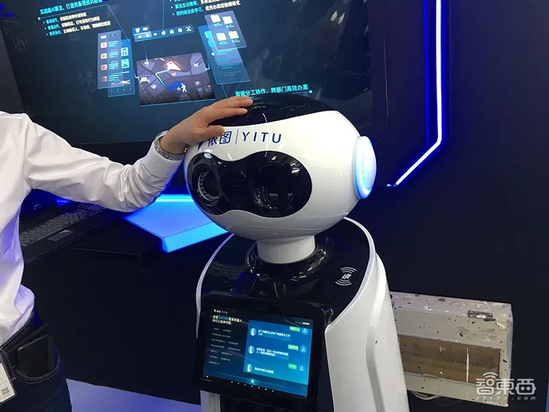 在AI独角兽依图展位的边上有个外形可爱的机器人,该机器人是北京西单商业区同款的巡逻小警察小依,由依图和公安部第一研究所联合研制,集人脸识别与语音功能于一体,吸引了不少参观者前来“调戏”。