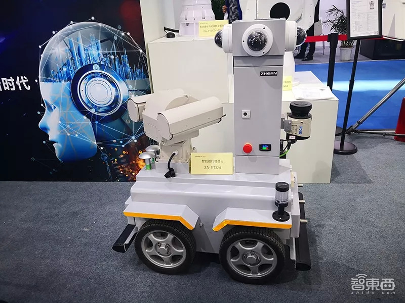 此外,中智科创等机器人企业、中安视通等智能摄像头企业也都展出了巡检机器人产品。其中中安视通的巡检机器人是与浙江大学合作的项目,目前在滨江公安局有落地应用。