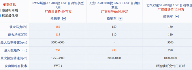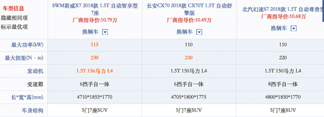 在无涡轮车型不买的情况下,重庆造的7座SUV都具价格优势,而对于10万元的购车预算来说,斯威X7和长安CX70具有动力优势,而幻速S7更具空间、变速器和配置上的优势。喜欢更丰富的配置和8AT带来的平顺,幻速S7是不错的选择,而喜欢随主流购车选择长安CX70也不错;当然斯威X7也值得推荐,究竟买谁看自己喜欢了。