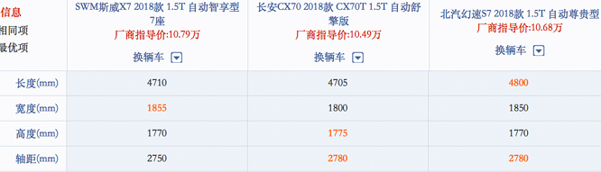 买车如同相亲,主要还是看眼缘,长安CX70、斯威X7和幻速S7三款车或许都还有一些MPV的进化元素,外形具体谁更好看,只有消费者自己能下定论,自己喜欢就好,编辑不多发表评论。今天就10万元买7座SUV,抛开颜值谈价值,看究竟买谁更值?