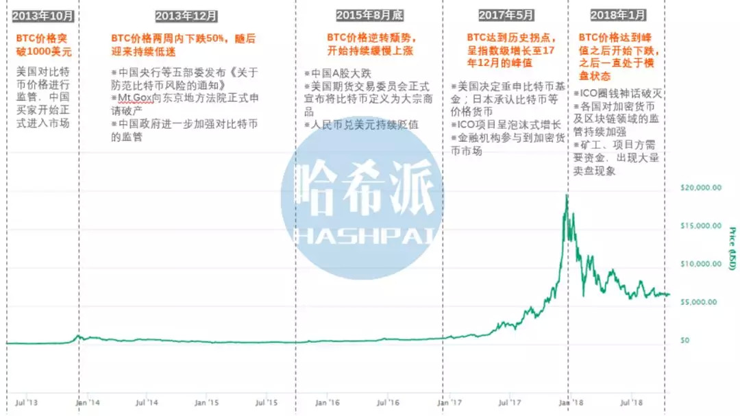 随着市场参与者及大额资金流入的增多,影响比特币价格涨跌的相关因素变得更为复杂。在2017年年底以前,少数重要新闻便能导致市场在较长一段时间里归于沉寂,比如让比特币价格在2014到2015年间处于持续低迷状态的中国央行风险通知及Mt. Gox破产事件。但是在国内外政府对加密货币领域监管逐步加强及机构级投资者持续入场的大背景下,步入2018年以来比特币价格对消息面的敏感程度呈现下降趋势。