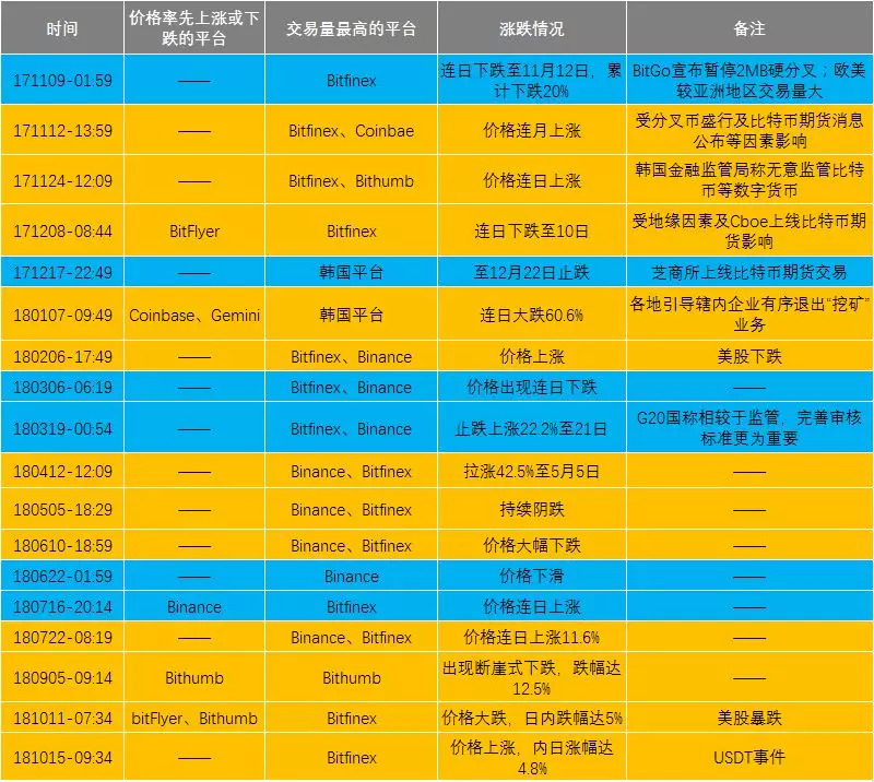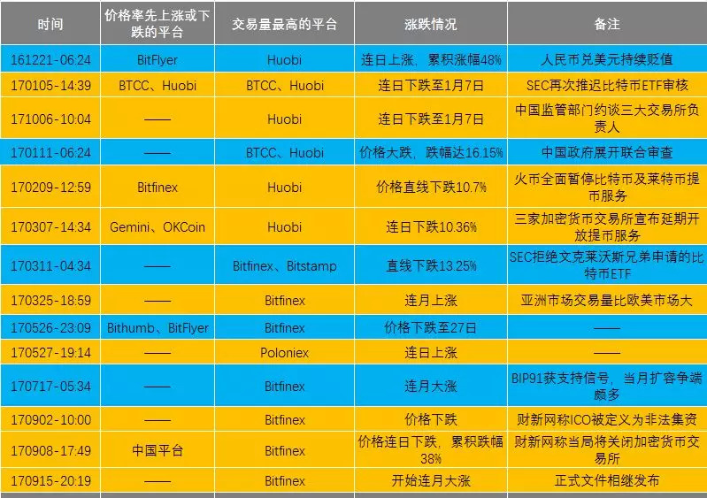 不过无论是监管趋严前还是后,对比特币价格走势影响较大的依旧是亚洲市场。