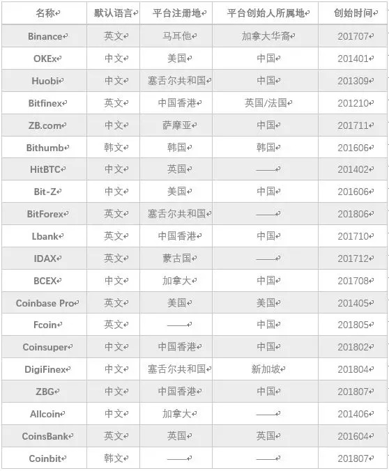 交易量排名前二十的交易所,有半数以上创始人来自中国
