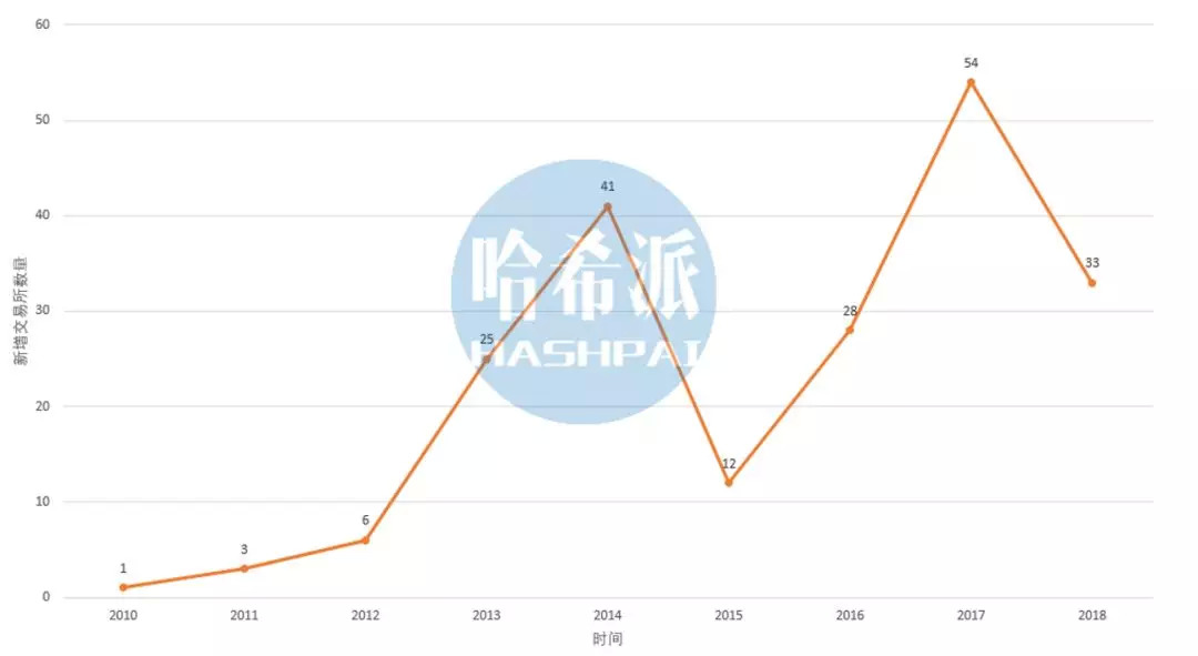历年支持比特币的新增交易所数量(数据源自:Coinmarketcap)