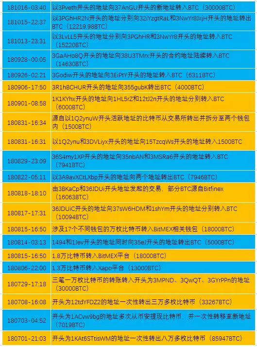 此外值得关注的是,场外交易增长同时,市场上关于BTC巨额转账的报道也开始频繁传出;根据火币区块链研究所的说法,近期频繁出现的巨额转账以新旧地址间互转及交易所提现居多。但是比特币价格并未因此产生较大波动,其市场行情今年第二季度开始一直处于横盘状态。这些缺乏对价格影响的频繁转账,可能意味着场外资金积累正在发生。