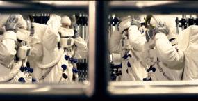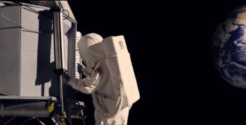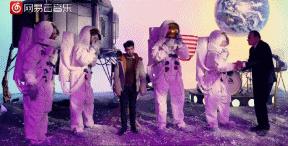 画面一转,四个人穿上了宇航服,进入了一个摄影棚,开始拍摄登月的过程。