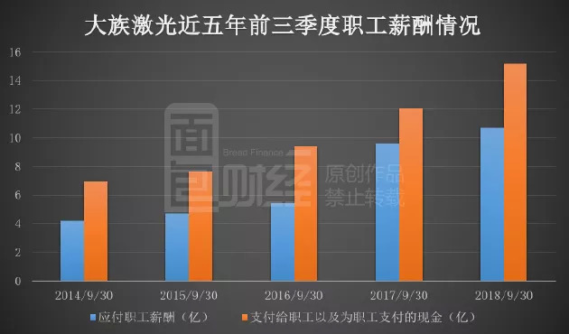 三季报显示,截止2018年9月30日,公司员工数量11991人,同比增长22.28%;账面的应付职工薪酬约10.68亿,同比增长11.43%;报告期内公司支付给职工以及为职工支付的现金约15.17亿,同比增长26.08%。