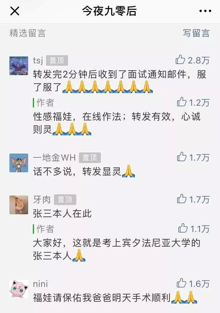 自然而然,这篇比锦鲤本鲤物种入侵还要繁衍迅速的自媒体推文也就成为了新一个“供奉”对象。”
