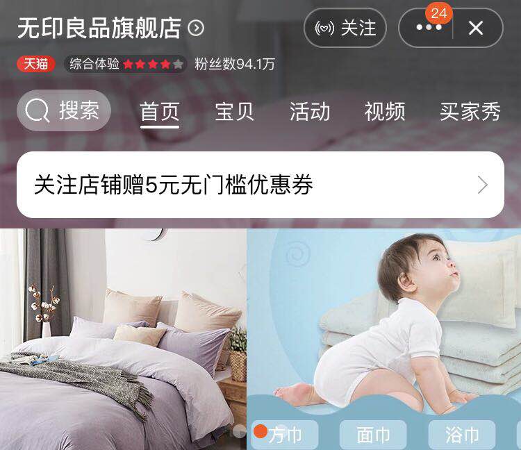 给消费者带来困扰的也不止是实体店的混淆。在中国线上平台天猫上,也同时并列着两家公司开设的名为“无印良品MUJI官方旗舰店”和“无印良品旗舰店”的线上店铺。无可厚非,前者作为正品官方店拥有着540万的粉丝量,但讽刺的是,山寨的“无印良品”店铺也积攒了94.1万的粉丝。