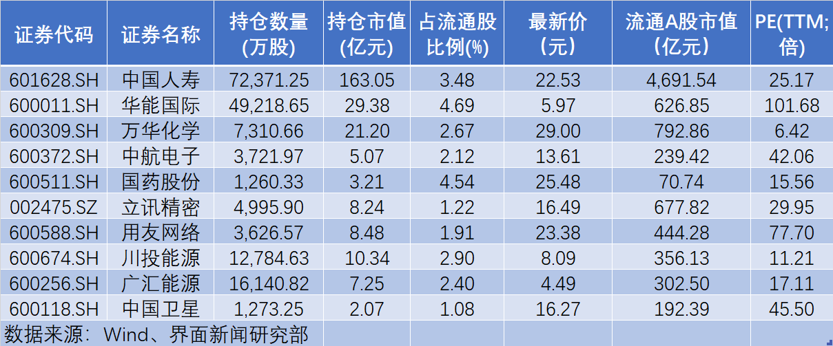 此外,三季度,证金公司还对45只重仓股进行了增持,从增持金额来看,中国人寿(601628.SH)、华能国际(600011.SH)、万华化学(600309.SH)获增持金额最大,分别为12.54亿元、2.94亿元、2.12亿元。