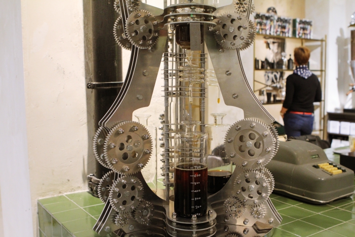 有别于其他咖啡店的是,坐落在上海愚园百货公司的Akimbo更像一个实验室,放置了很多古老的装置。