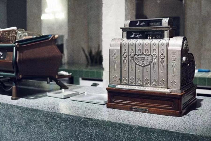 这是一台老式收银机,年代感十足。