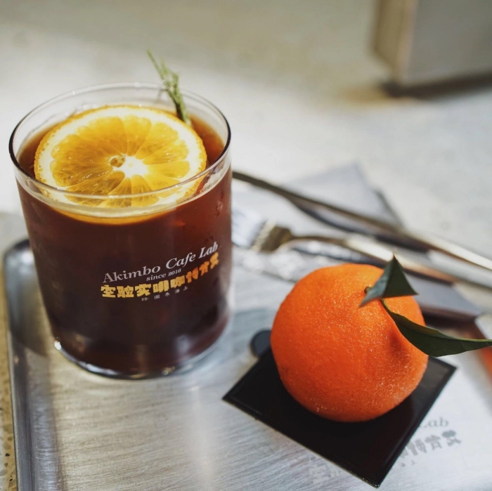咖啡配上甜点,就是一份简式下午茶,右侧的橙子其实是一款甜点。