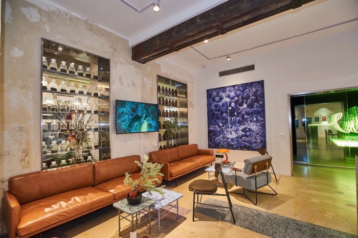 Aura.a画廊还是很好的休憩场所。只见大家拿着咖啡,三三两两地坐在一起,有的人在讨论工作上的事宜,有的人纯粹聊聊天,看看墙上的画作,很是惬意。