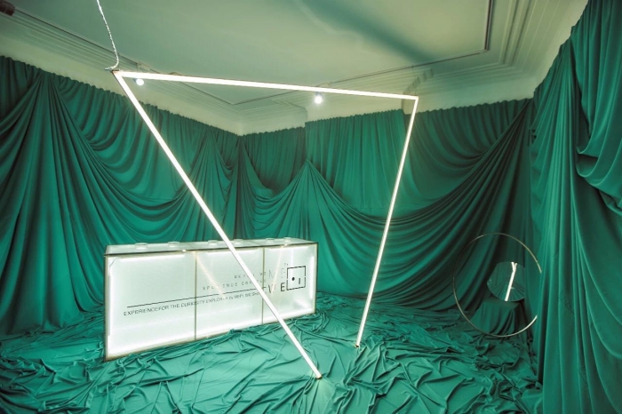 沿着狭窄的老式楼梯上二楼就能看到两个Pop-up展厅,目前正在展出的是香水品牌 Me Ft. We的单品。看完展后,大家可以自行去楼下的潮牌店购买香水。今后,这里将不定期举办各种快闪活动,值得期待一下。