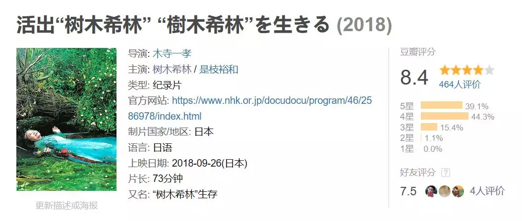 尽管有8.4分的豆瓣评分,但说实话,这部纪录片拍得及其平庸,甚至可以用无聊来形容。几段流水账似的跟拍记录,没什么感情的旁白,毫无出彩的采访剪辑,但树木希林的独特魅力和人生尽头的珍稀影像,使这部纪录片充满了静如水,笃如石的人生况味。