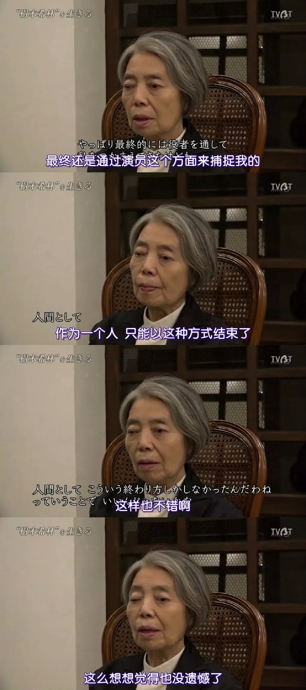 秉承着这样的人生态度,树木希林撑着一口气,在人生的最后一年,拖着日间残破的躯体,完成了四部电影作品的拍摄。于是我们看到了从独自开车去片场到走路都要人搀着的树木希林,熬夜拍戏第二天也不休息的树木希林,给是枝裕和提意见改剧本的树木希林,拼命要传达出真心的树木希林。