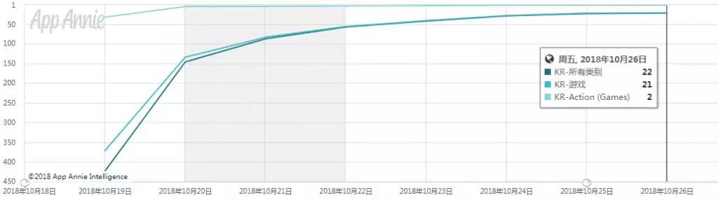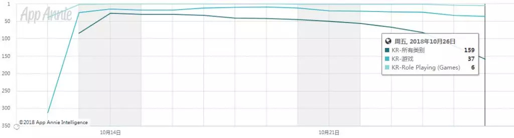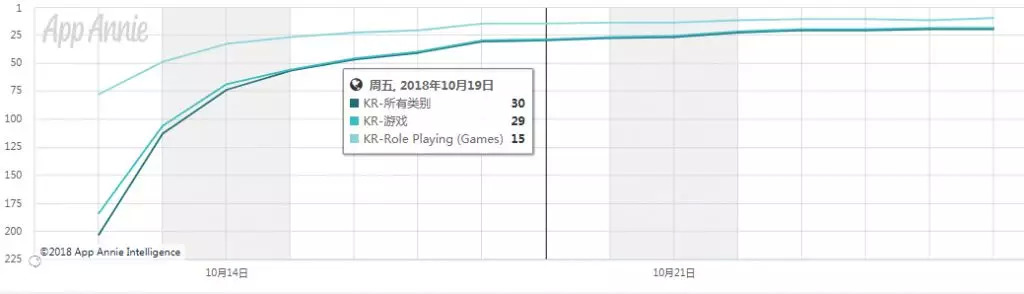 我们还是先从韩国市场开始:(由于韩国市场的手机平台构成极不平衡,所以我们取用的数据是在当地占据绝对优势的GooglePlay市场数据。)