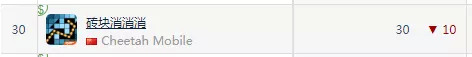 《砖块消消消》目前在美国App Store游戏免费榜排名已经下跌至第30