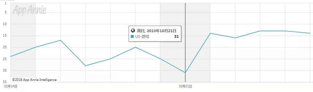 《王国纪元》最近两周在美国App Store游戏畅销榜排名变化