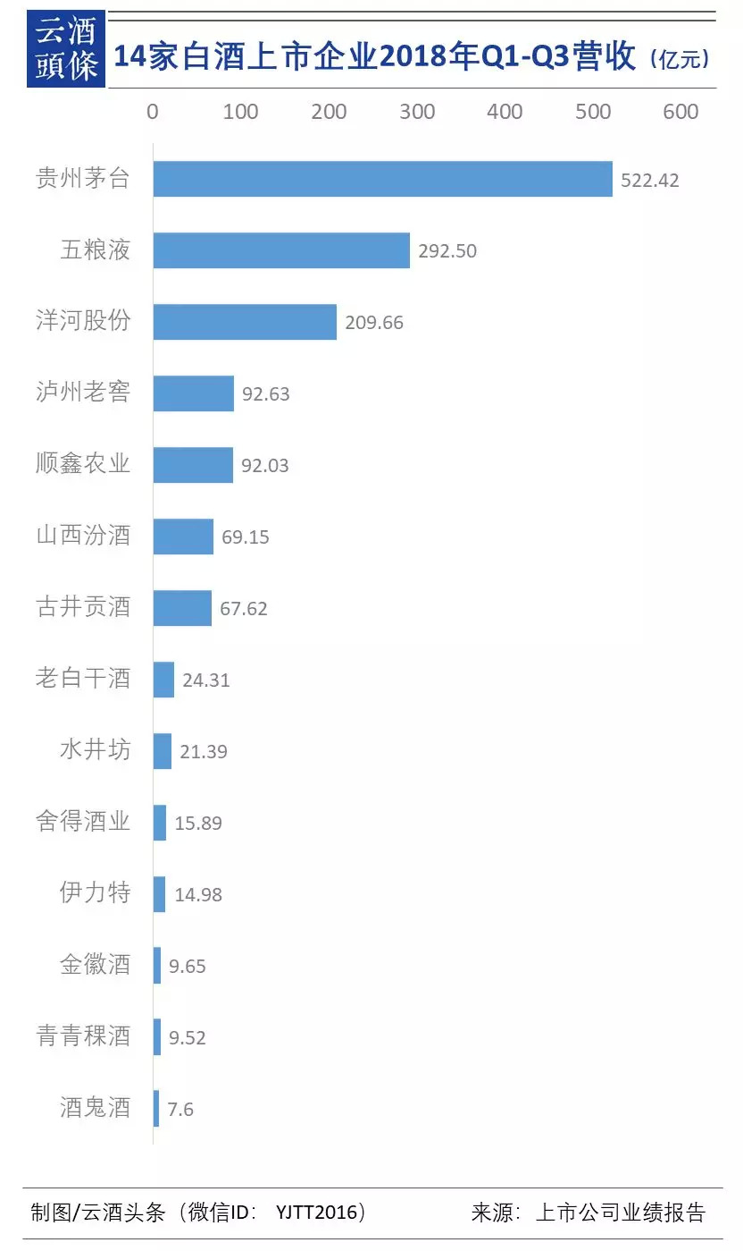 在近期发布的酒业三季报中,随着马太效应的凸显,以茅台、五粮液、洋河、泸州老窖、汾酒为代表的名酒阵营,前三季度营收创纪录的拿下1186.36亿元,离1200仅一步之遥。