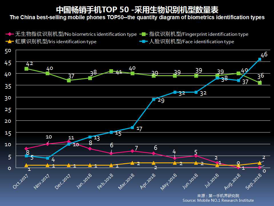 (备注:由于多个机型会同时拥有指纹、虹膜和人脸识别,故机型数量会有重叠)